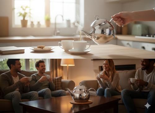 - يضمن إبريق الشاي التركي الكبير المصنوع من الفولاذ المقاوم للصدأ بتصميم مزين بوردة حصولك على المتانة والتسخين المتساوي، مما يجعله مثاليًا لتحضير الشاي الأنيق للتجمعات والمناسبات.