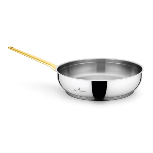 QUEEN. - طاسة قلي سافرام من الفولاذ المقاوم للصدأ مقاومة للالتصاق للطهي بكميات كبيرة من كويين، 8697424632799 مقاس 22 سم، ذهبي