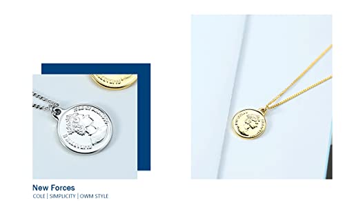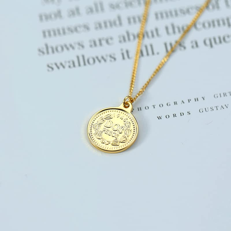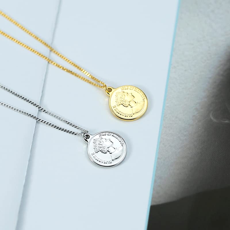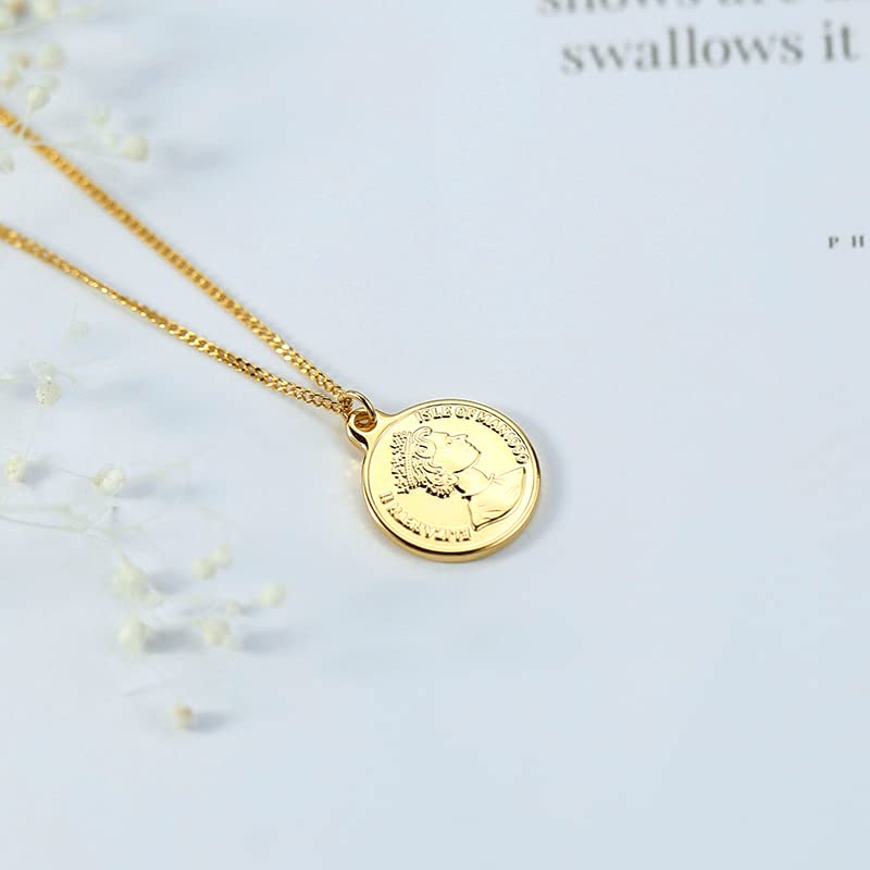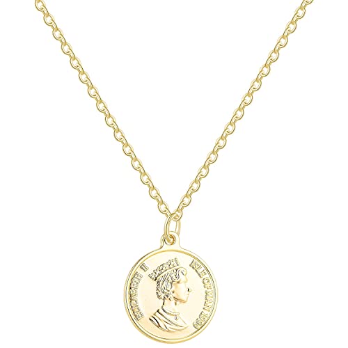 Todenb - عقد بدلاية منقوشة بصورة جانبية للملكة اليزابيث الثانية للنساء دلاية بشكل عملة معدنية مستديرة مطلية بالذهب 18 قيراط تصميم عتيق وانيق ستانلس ستيل بدون أحجار كريمة