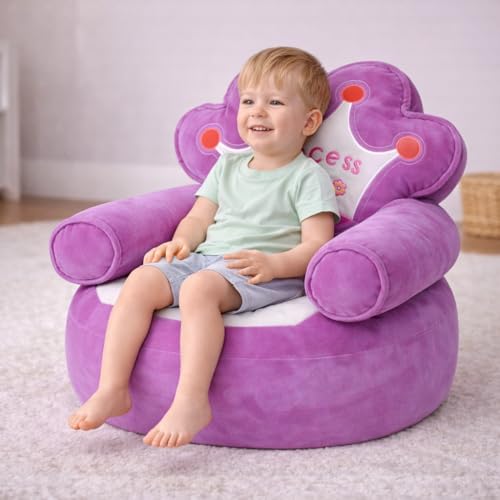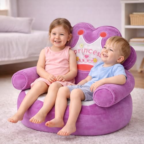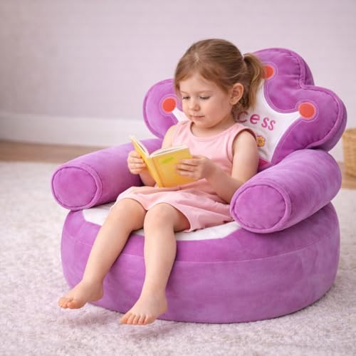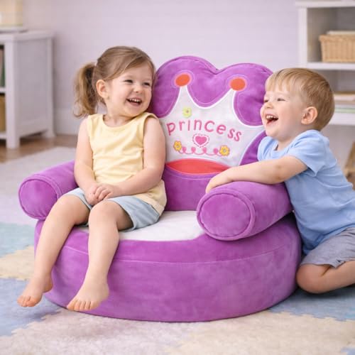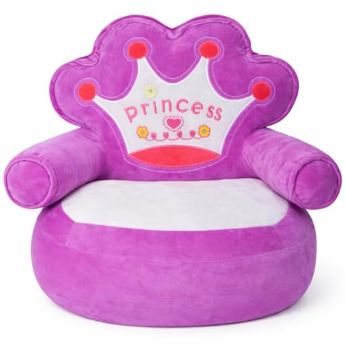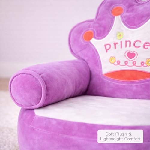 ماجنوليا تويز - كرسي اريكة قطيفة للاطفال من كوين - كرسي بذراعين بتصميم تاج مع حشو من الياف البوليستر، مقعد ناعم وخفيف الوزن للاطفال الصغار، مثالي لغرفة النوم والحضانة وغرفة اللعب (ارجواني)