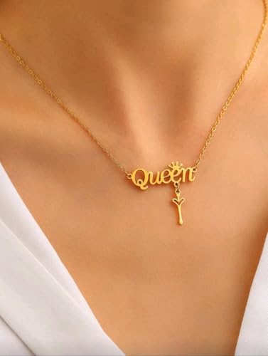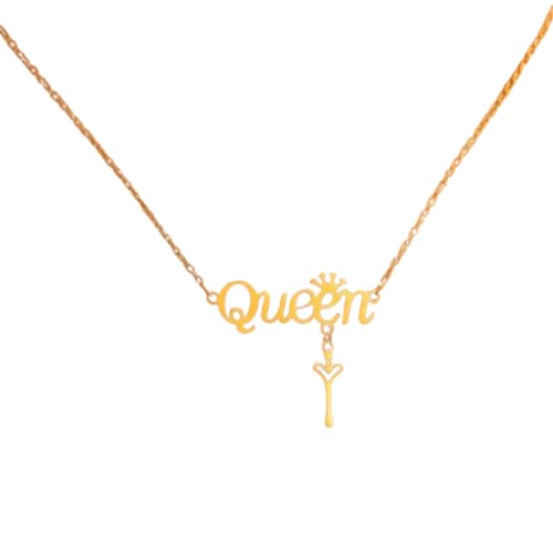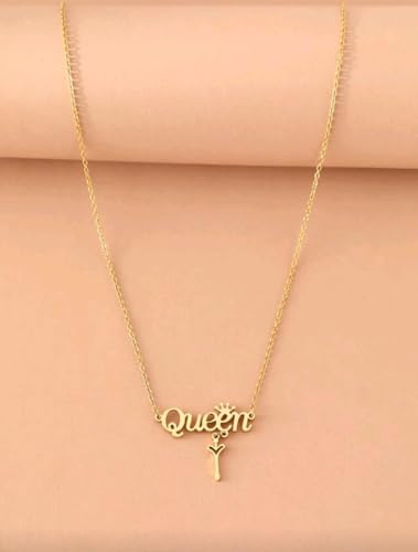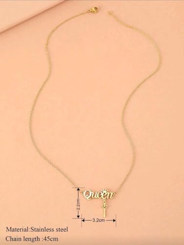 Generic - قلادة Queen باللون الذهبي تصميم تاج أنيق ستانلس ستيل مقاوم للصدأ اكسسوار راقي للبنات