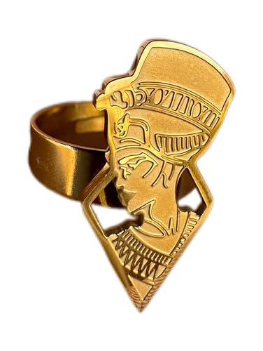 Generic - خاتم كوين نفرتيتي فرعوني، ستانلس ستيل 316L مطلي بالذهب، مقاس قابل للتعديل، مجوهرات مضادة للصدا