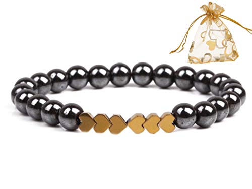 generic - سوار خرز مغناطيسي من حجر الهيماتايت الطبيعي بتصميم قلب من كوين اوف دايموندز، سوار مضاد للتوتر والقلق، مجوهرات للجنسين + شنطة هدايا