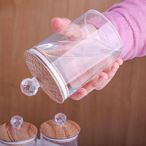 Generic - طقم تخزين سكرية كوين بديكور خشبي - 4 أوعية شفافة مع قاعدة لمطبخ أنيق، لحفظ التوابل والأعشاب كقطعة ديكور وظيفية
