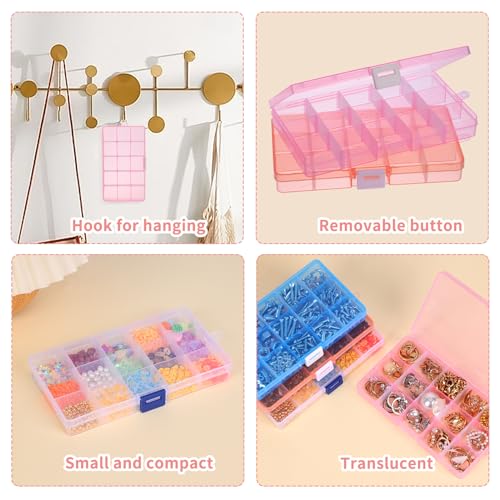 QUEFE - منظمات وتخزين الخرز مكونة من 15 شبكة، صندوق منظم مجوهرات بلاستيكي صغير مع فواصل قابلة للازالة لحاويات تخزين الخرز والحلقان من كويفي، عبوة من 4 قطع (18 × 10 × 2 سم)