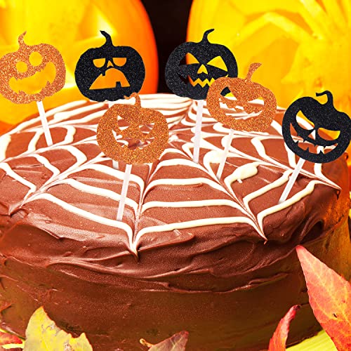- 【تصميم فريد】: هذه الزينة الخاصة بالهالوين بوجه اليقطين باللونين الأسود والذهبي يمكن استخدامها كحلوى أو كيك أو كوكتيل لمفاجأة أصدقائك وعائلتك في عيد ميلاد أو عطلة أو حفلة.