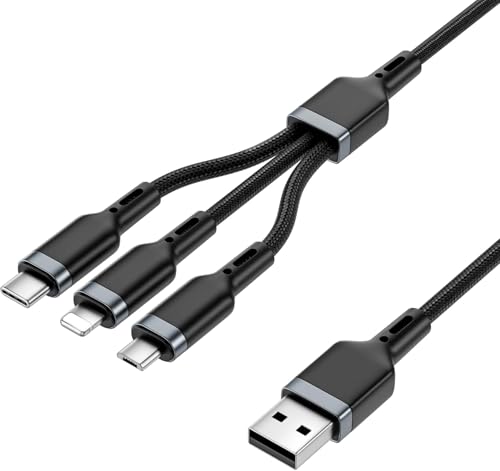 QUEST كويست - كيبل شحن نايلون 3 في 1 مع موصلات متعددة المنافذ من كويست، تصميم متين للاستخدام اليومي للشحن
