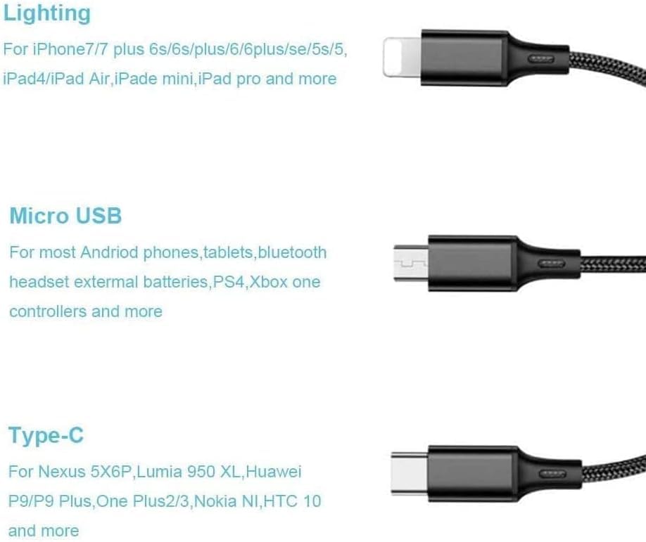 - تصميم متعدد المنافذ 3 في 1 - كابل واحد مع موصلات متعددة، متوافق مع الأجهزة المختلفة للشحن اليومي المريح.
