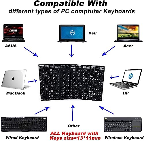 - سهلة الاستخدام: تسمح الملصقات ذاتية اللصق بوضع سريع ودقيق على معظم لوحات المفاتيح القياسية.