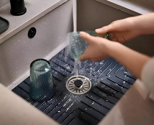 - لا تحمي هذه السجادة الحوض فحسب، بل تحمي أيضًا نظارتك وأطباقك من الكسر والخدوش. تمنع السدادة القابلة للإزالة تسرب المياه بشكل فعال، مما يسمح لك بالحفاظ على مساحة نظيفة ومرتبة مع ضمان حماية أغراضك بشكل جيد.