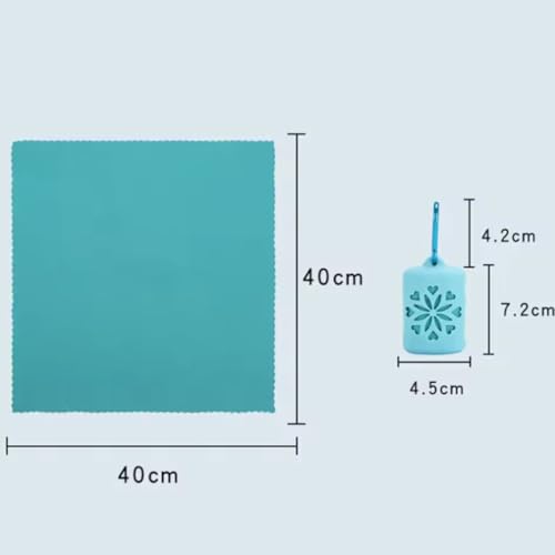 - الأبعاد: تأتي الفوطة الكبيرة المصنوعة من المايكروفايبر مقاس 40 × 40 سم مع شنطة حمل صغيرة من السيليكون مقاس 7.2 سم × 4.5 سم، مثالية لسهولة التخزين والنقل.