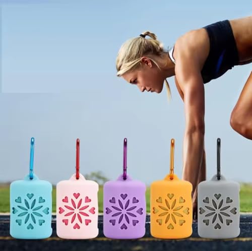 Generic - مجموعة فوط سريعة الجفاف مع حافظة من السيليكون، فوطة تبريد مايكروفايبر مقاس 40×40 سم، متوفرة في 5 ألوان، سهلة الحمل للجيم واليوجا والجري