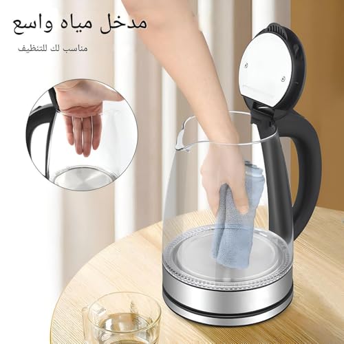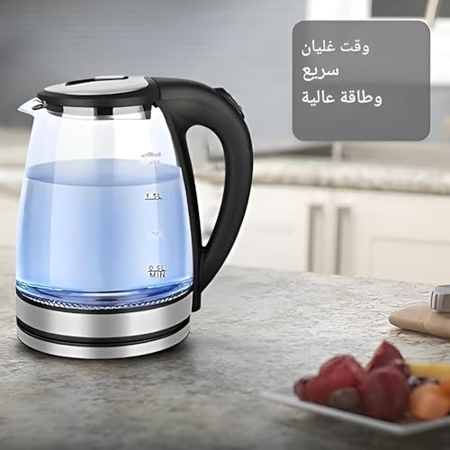 Generic - غلاية زجاجية كهربائية سريعة بسعة 2 لتر مع تشغيل هادئ وميزة امان اغلاق تلقائي وضوء طاقة