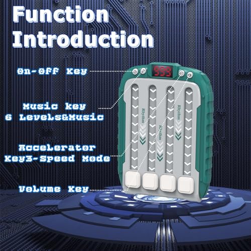 - آلة ألعاب إيقاع الموسيقى، تعمل آلة لعبة الإيقاع الأخضر هذه على حل المستويات عن طريق إزالة الأسهم في إيقاع الموسيقى. تم تصميمها للأطفال من سن 5 إلى 12 سنة، وهي سهلة اللعب وتوفر مجموعة متنوعة من المستويات. (يتطلب 3 بطاريات ايه ايه ايه 1.5 فولت، غير متضمنة)