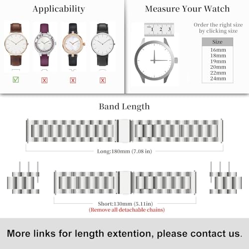 - سوار ساعة بسلسلة معدنية سريعة الفك وحلقات من الفولاذ المقاوم للصدأ مقاس 18 و19 و20 و22 ملم للرجال والنساء من كيه كيه فاوس (فضي، مقاس 22 ملم).