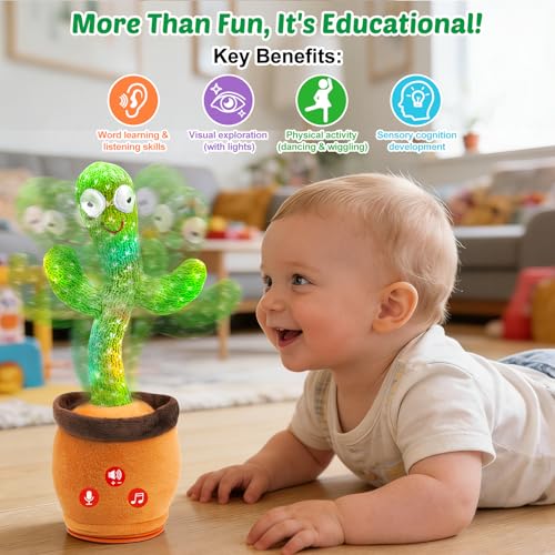 Qularlans - لعبة الصبار الراقصة والمتكلمة، لعبة تفاعلية مضحكة للأطفال البيبي تغني وتضيء وتكرر الكلام مناسبة للأولاد والبنات من عمر 6 أشهر إلى 3 سنوات من كولارلانس