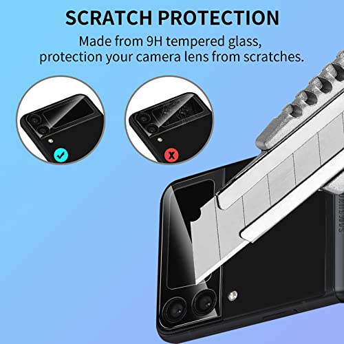 QULLOO - شاشة حماية للكاميرا متوافقة مع سامسونج جالاكسي Z فليب 4 شبكة الجيل الخامس 5G [عبوة من 3 قطع] بدرجة صلابة 9 عدسة شفافة HD الزجاج المقوى لحماية الكاميرا مضادة للخدش كولو أسود