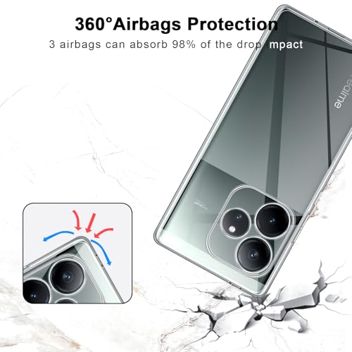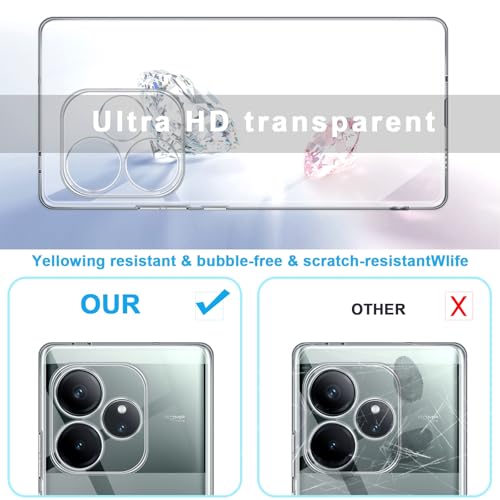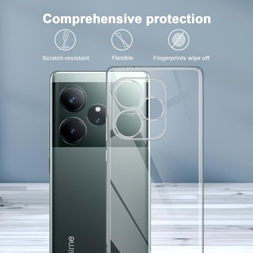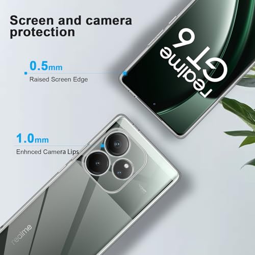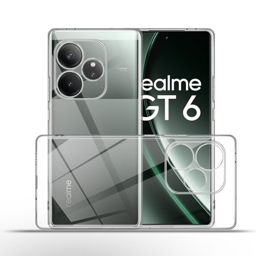 QULLOO - جراب ممتص للصدمات من السيليكون والبولي يوريثين الحراري بتصميم شفاف ورفيع ومضاد للخدش لموبايل ريلمي GT 6 وGT 6T كيولو