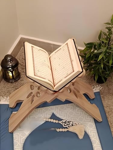 - مثالي كهدية مدروسة، يرمز حامل القرآن هذا إلى المكافأة الروحية المستمرة ويعمل كهدية ذات مغزى للأحباء الذين يسعون إلى الارتقاء ببيئة العبادة الخاصة بهم.