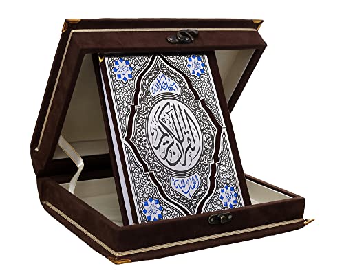 Generic - مصحف القرآن الكريم بعلبة قطيفة وقفل، بني، خشب