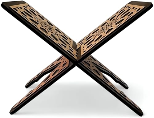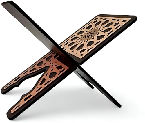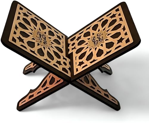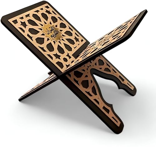 Generic - حامل القرآن - حامل كتب إسلامي خشبي مزين بنقوش عربية بالليزر، قاعدة قابلة للطي لقراءة القرآن والعبادة، تصميم بني تقليدي