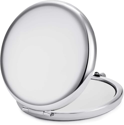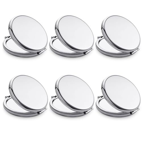 QUSTGO - مراة صغيرة الحجم من كوستجو، مراة مكياج للسفر للجيب للمحفظة، هيكل معدني دائري، تكبير على الوجهين 1X/2X، محمولة، قابلة للطي، محمولة باليد، فضي، 6 قطع