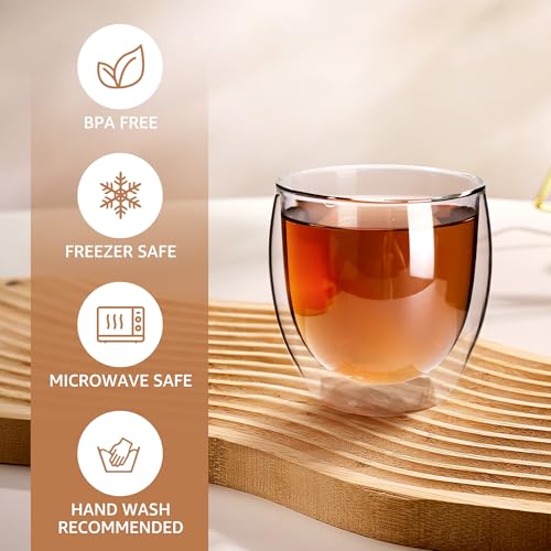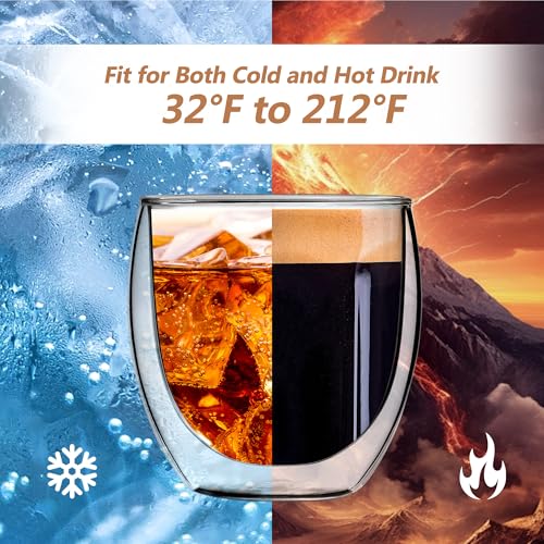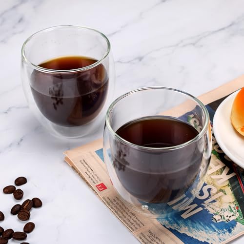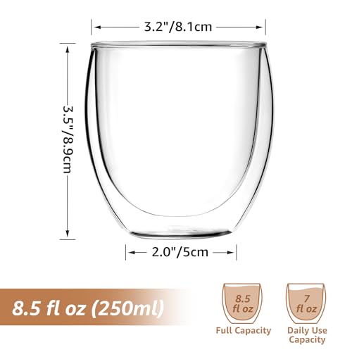 QUTREY - طقم مجات زجاجية سعة 227 مل من قطعتين من كتري، أكواب قهوة زجاجية معزولة مزدوجة الجدران، أكواب شفافة للقهوة والشاي واللاتيه والكابتشينو والحليب والعصير