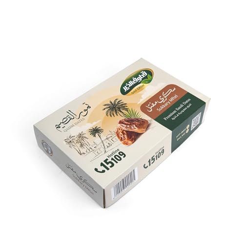 - نوع التمر: تمر سكري مفتل من قطوف الخير، حبات كاملة طبيعية ومختارة بعناية لضمان أعلى جودة ومذاق مميز