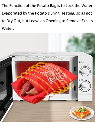 QUUPY - مجموعة من 4 قطع من أكياس البطاطس القابلة للغسل في الميكروويف، أكياس بطاطس سريعة قابلة لإعادة الاستخدام، تستخدم لصنع بطاطس مثالية في 4 دقائق، أحمر، 25 × 19 سم