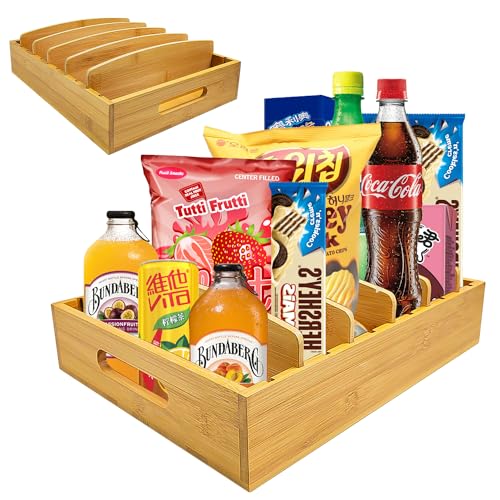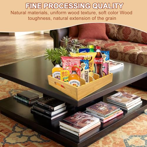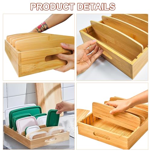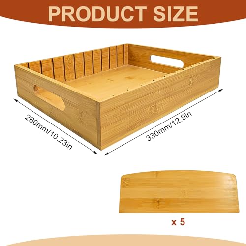 QUVBKZ - صندوق تخزين خشبي غطاء وعاء من البامبو أدراج مع 5 فواصل قابلة للتعديل حامل وحامل أطباق