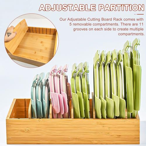 - المرونة: يأتي حامل غطاء الوعاء القابل للتعديل الخاص بنا مع 5 فواصل قابلة للإزالة تسمح لك بإنشاء مساحات تخزين متعددة. لذلك يمكنك تنظيم أدوات المطبخ الخاصة بك وفقًا لاحتياجاتك.