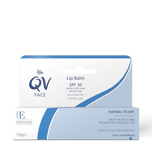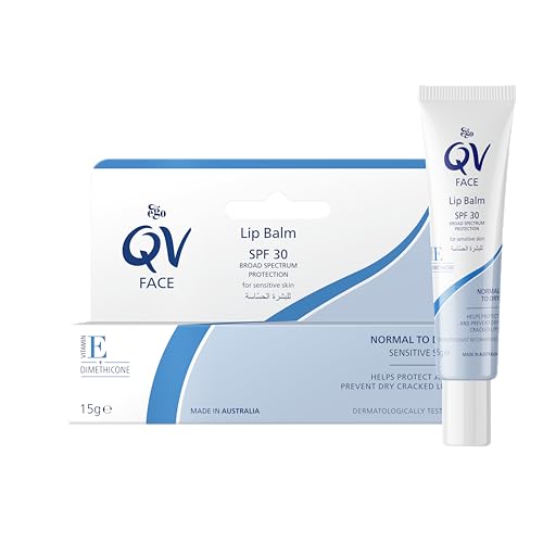 QV - مرطب شفاه للوجه بمعامل حماية من أشعة الشمس 30 من كيو في/15 جرام/حماية واسعة الطيف من الأشعة فوق البنفسجية الطويلة والمتوسطة، مرطب ومهدئ، خالي من العطور ولا يسبب الحساسية، مثالي للشفاه الجافة والحساسة