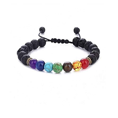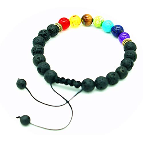 QWE - سوار مضفر من كيوي للرجال والنساء، خرز من الصخور البركانية شاكرا 7 ملم، سوار مضفر مع احجار عقيق، سوار شفاء بطاقة الاحجار الكريمة لون اسود قابل للتعديل مضفر، سوار, حجر,
