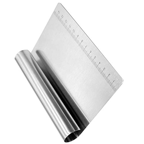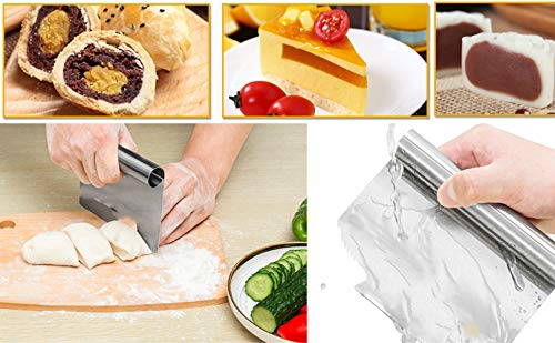 QWEQWE - قطاعة ومعجنات من الستانلس ستيل مصقولة بمرآة من الستانلس ستيل - قطاعة كيك وبيتزا - سكينة بمقياس فاصل خبز المعجنات (تاتي مع فرشاة تنظيف اسفنجية من السيليكون)