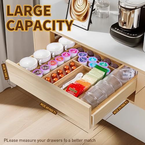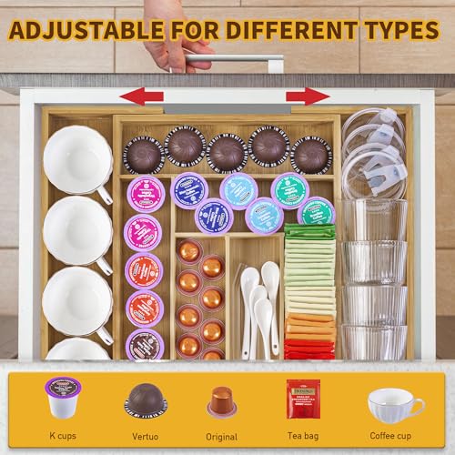 QWEZXO - درج تنظيم كبسولات القهوة، درج أكواب كيه من الخيزران متوافق مع كبسولات نسبريسو فيرتو، منظم درج لكبسولات كيه كب 25 إلى 45 لركن القهوة والمنزل والمكتب والمطبخ من كويزكسو (بامبو)