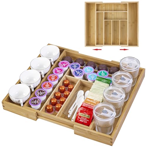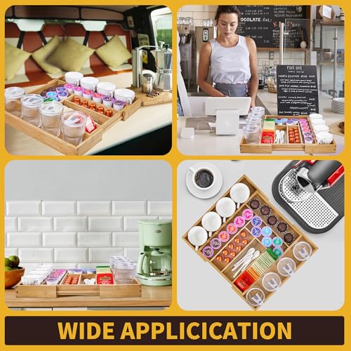 - 【قابل للتوسيع والتعديل】 يتميز منظم كبسولات القهوة بـ 6 فواصل مرنة يمكن تعديلها لتناسب مختلف كبسولات القهوة وأكياس الشاي والمحليات. يمكن أن يتوسع وينزلق بسلاسة ليتراوح عرضه من 32.8 سم إلى 50.8 سم، مما يتيح لك ضبط العرض بسهولة ليناسب مقاس سطح الموقد أو مقاس الدرج.