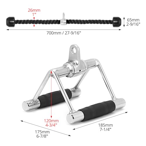 - تدريب متعدد: مثالي للتجديف الجالس والتدريب على الظهر والكتفين والساعدين وثلاثية الرؤوس والعضلة ذات الرأسين. مزيج من المقابض على شكل حرف V وحبل ثلاثي الرؤوس يجعل تمرينك متنوعًا.