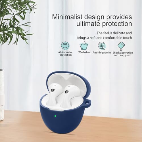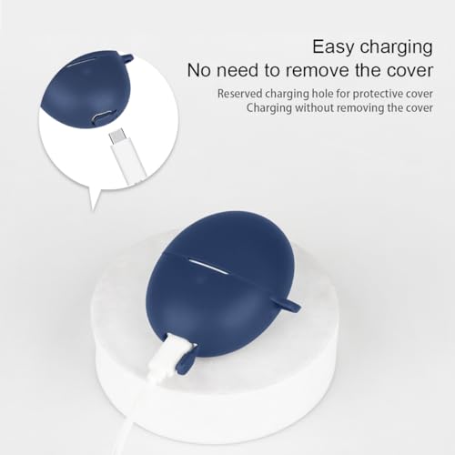 QWYJ - جراب حماية سيليكون لسماعات هواوي فري بودز 6 من كيو دبليو واي جيه، حافظة حماية من السيليكون مع سلسلة مفاتيح بحلقة تعليق مضادة للضياع (ازرق)