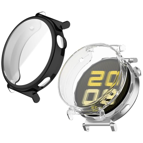 QWYJ - هيكل حماية لساعة هواوي GT 5 مقاس 41 ملم من كيو دبليو واي جيه، إطار مقاوم للخدش ناعم وخفيف الوزن ومضاد للصدمات (عبوة من 2 قطعة) (أسود + شفاف)