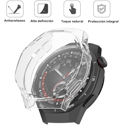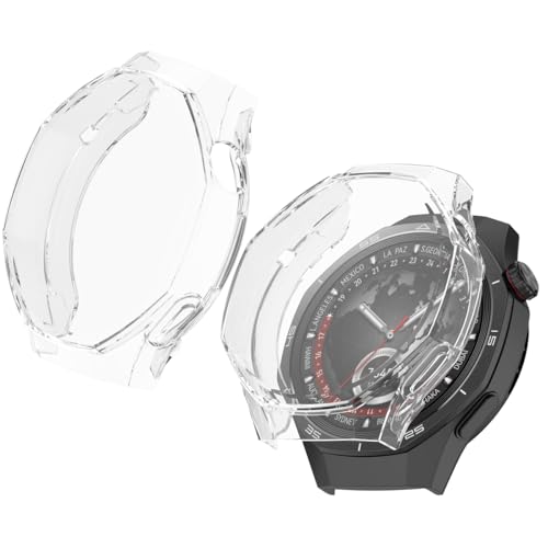 QWYJ - جراب حماية لساعة هواوي GT 5 برو مقاس 46 ملم مزود بشاشة حماية من كيو دبليو واي جيه، جراب يحمي الشاشة مقاوم للخدش بإطار ناعم وخفيف الوزن ومضاد للصدمات (قطعتان، شفاف + شفاف)