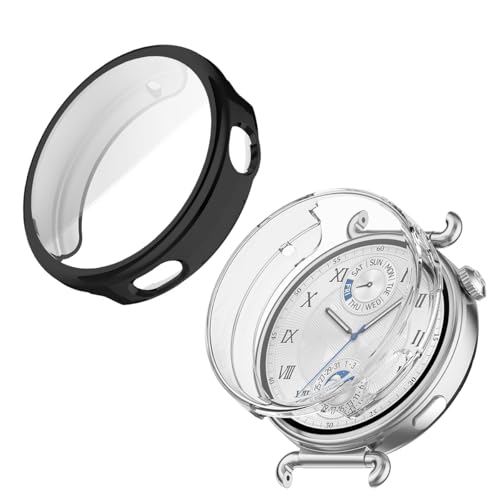 QWYJ - جراب حماية لساعة هواوي GT 6 مقاس 41 ملم من كيو دبليو واي جيه، إطار مقاوم للخدش ناعم وخفيف الوزن ومضاد للصدمات (عبوة من 2 قطع) (لون أسود + شفاف)