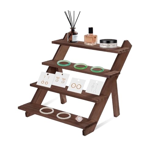 QYCX - حامل عرض مجوهرات خشبي من 4 طبقات، حامل مجوهرات خشبي لعرض الخواتم والأقراط والمجوهرات والكب كيك، منظم بطاقات الأقراط، حامل عرض المجوهرات والأساور من كيو واي سي اكس