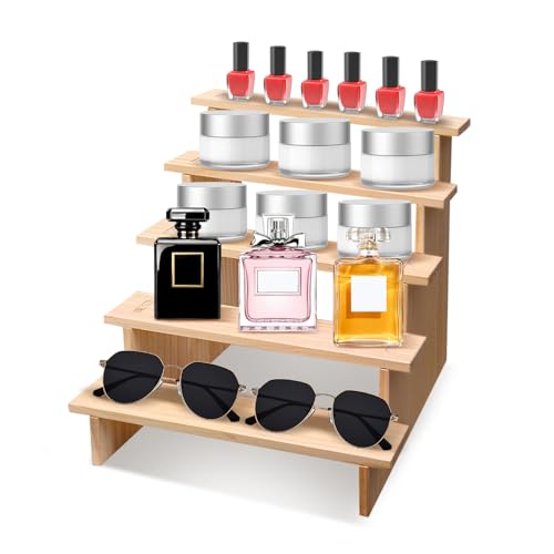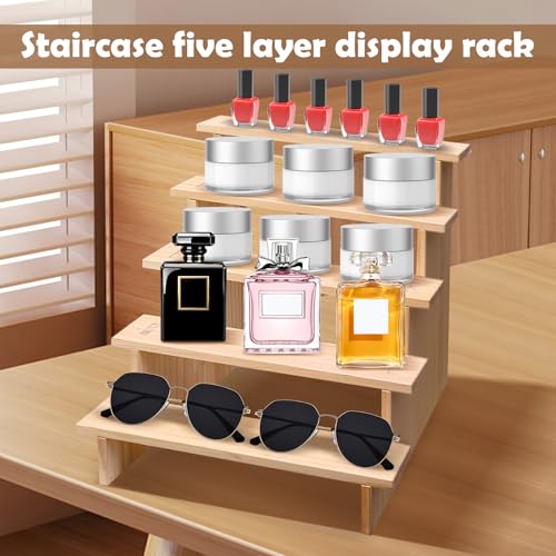 QYCX - حامل عرض مجوهرات خشبي من 5 طبقات، حامل خشبي لعرض المجوهرات والخواتم والحلقان والمجوهرات، حامل خشبي للكب كيك ومنظم للاقراط والمجوهرات والاساور