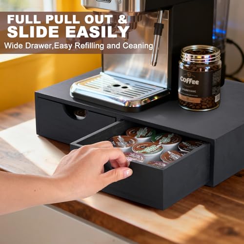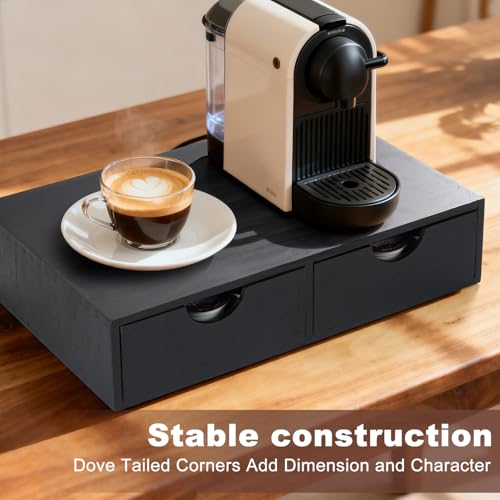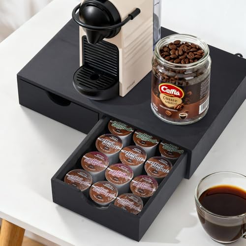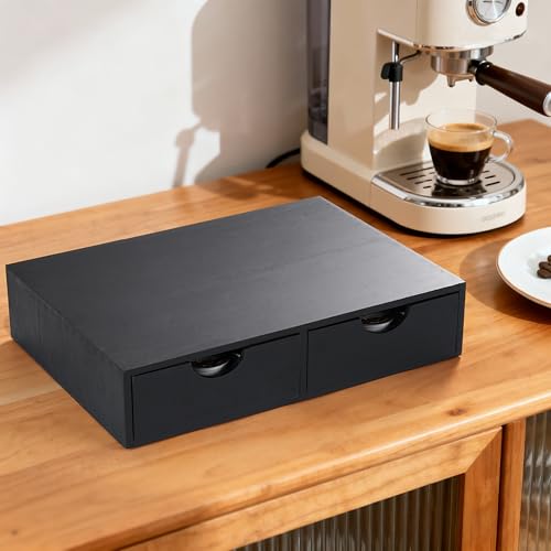 QYJinlida - صندوق خشبي منظم اكواب كيه من كيو واي جينليدا، صندوق تخزين كبسولات القهوة واكياس الشاي، حامل ماكينة تحضير القهوة درج كيه كاب، طاولة المطبخ المنزلية تحمل ما يصل الى 30 كبسولة (درجين) (اسود انيق)