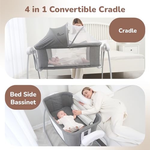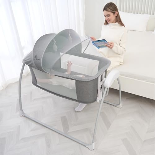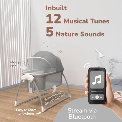 R for Rabbit - سرير أطفال لولابايز كهربائي ذكي 4 في 1 قابل للتحويل إلى سرير بجانب السرير أو ساحة لعب بجهاز تحكم وبلوتوث وعداد الوقت وموسيقى للأطفال بعمر يوم إلى 2 سنة وحتى وزن 15 كجم من ار فور رابيت، لون رمادي