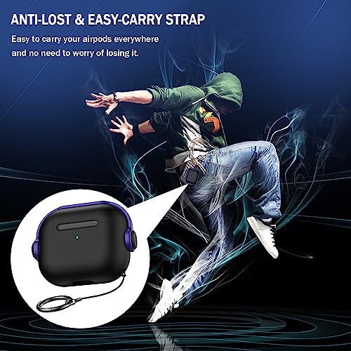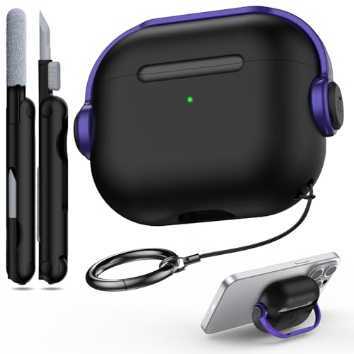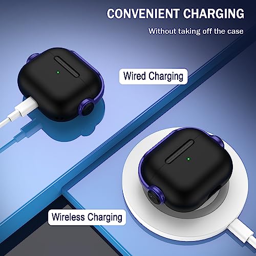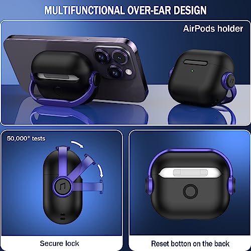 R-fun - جراب حماية لسماعات ايربودز الجيل الثالث مع قفل أمان، جراب حماية لسماعات الأذن الموسيقية مع مجموعة تنظيف لسماعات ابل ايربودز 3 2021، جراب شحن أسود وأرجواني من ار-فن