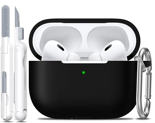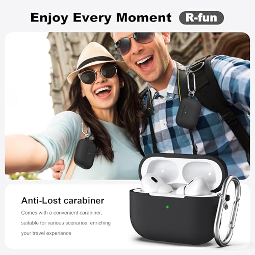 R-fun - جراب حماية لسماعات ايربودز برو الجيل الثاني/الأول مع مجموعة أدوات تنظيف و4 أزواج من أطراف بديلة مقاس (XS/S/M/L)، كامل السيليكون ابل 2022/2019 ار-فن - أسود