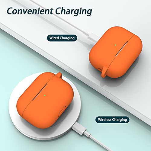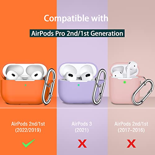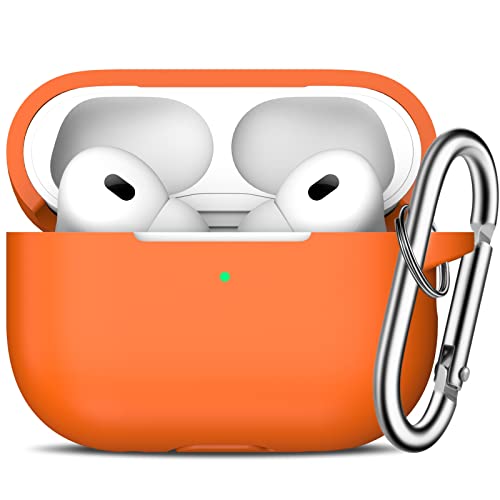 R-fun - جراب سيليكون لسماعات آبل ايربودز برو الجيل الثاني 2022 والجيل الأول 2019 اكسسوارات حماية كاملة مع إضاءة ليد أمامية مرئية للرجال والنساء من ار-فان، لون برتقالي