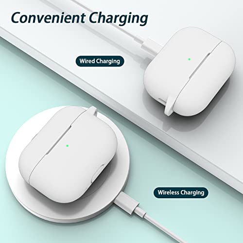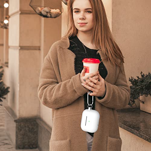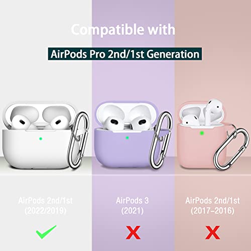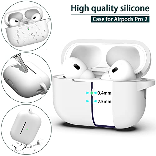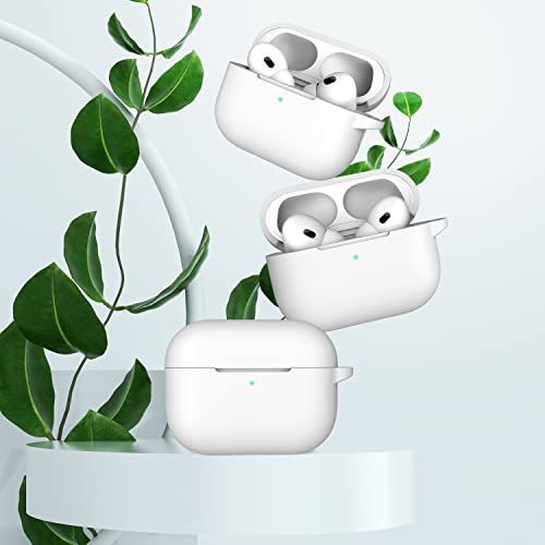 R-fun - جراب حماية من السيليكون لسماعات آبل إيربودز برو الجيل الثاني 2022 والجيل الأول 2019 من ار-فن، ملحقات حماية كاملة للنساء والرجال، مصباح ليد أمامي مرئي - أبيض