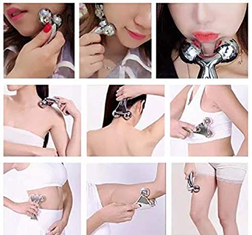 R RUNILEX - رولر التدليك من آر رونيلكس، لون فضي، طراز RN-174 ثلاثي الأبعاد، مقاوم للماء، يستخدم تقنية اللف للتدليك والاسترخاء وشد الوجه والجسم